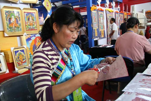 青海展區(qū)內(nèi)的民間藝人技藝展示