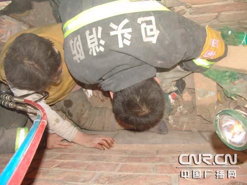 2007年10月31日,包頭市昆區(qū)友誼大街18號(hào)街坊某棟居民樓一樓,一位六十多歲的獨(dú)居老人被卡在自家的儲(chǔ)物間內(nèi)無法移動(dòng)。由于被困時(shí)間較長(zhǎng),儲(chǔ)物間內(nèi)空間又過于狹小,患有腦血栓后遺癥的老人十分危險(xiǎn)。上午10點(diǎn)47分,接到報(bào)警的消防七中隊(duì)立即出動(dòng)1部搶險(xiǎn)救援車、8名官兵趕往現(xiàn)場(chǎng)救援。到場(chǎng)后,經(jīng)過現(xiàn)場(chǎng)勘查,消防官兵決定采取鑿穿墻壁的方法營(yíng)救老人。為了保證安全,消防官兵們給老人戴上了頭盔、披上了戰(zhàn)斗服,并派兩名戰(zhàn)士深入儲(chǔ)物間里保護(hù)老人。12點(diǎn)50分,在120急救醫(yī)生的積極配合下,經(jīng)過近兩個(gè)小時(shí)的緊張救援,被困長(zhǎng)達(dá)10多個(gè)小時(shí)的老人終于被官兵安全救出,并被迅速抬上120救護(hù)車。由于營(yíng)救得當(dāng),老人在第一時(shí)間得到了救治,現(xiàn)在已經(jīng)基本恢復(fù)了健康。