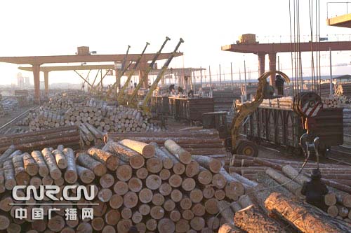 | 滿洲里口岸應(yīng)對運(yùn)輸壓力增加落地原木(圖) |