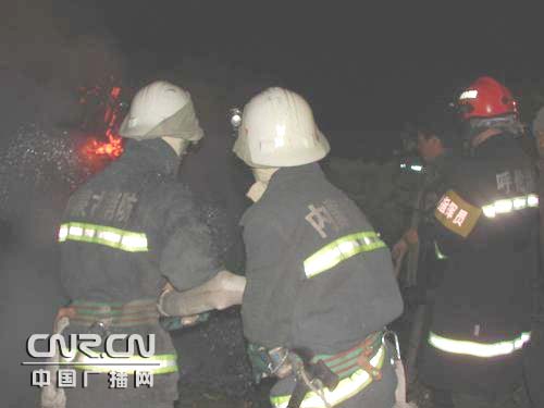 消防官兵奮力撲火 中廣網(wǎng)呼和浩特2月1日消息 (記者阿都?xì)J 通訊員王保國)1月31日19時51分,內(nèi)蒙古阿榮旗消防大隊(duì)接到報(bào)警稱:新發(fā)鄉(xiāng)長發(fā)屯六組趙恩才家后院草垛發(fā)生火災(zāi)。接到報(bào)警后,阿榮旗消防大隊(duì)立即出動2臺消防車迅速趕往現(xiàn)場,到場后合理采取戰(zhàn)術(shù),圍堵了火勢蔓延,成功地阻止了一起農(nóng)村火災(zāi)連營的發(fā)生。
