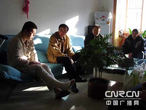 中廣網(wǎng)呼和浩特2月4日消息(記者鄭穎 通訊員張強、周軍)2008年2月2日,呼和浩特鐵路局工會主席曲永堂一行在包頭鐵路公安處領(lǐng)導(dǎo)的陪同下代表自治區(qū)、鐵路局看望了因公負傷的自治區(qū)勞動模范、全國優(yōu)秀人民警察張佩寧同志,在送去了慰問金和慰問品的同時也帶去了組織的關(guān)心和問候。