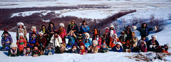 “五彩呼倫貝爾”合唱團(tuán)的三十七名孩子來(lái)自?xún)?nèi)蒙古自治區(qū)東部,世界上著名的大草原呼倫貝爾,最小的5歲,最大的13歲,其中三分之二來(lái)自牧區(qū)、森林和農(nóng)莊,同時(shí)也是中國(guó)第一個(gè)人口較少民族的兒童合唱團(tuán)。他們用5種自己民族的語(yǔ)言演唱代代相傳的童謠。這些來(lái)自草原深處的普通牧人的后代,以他們稚嫩的童聲,表達(dá)著對(duì)父輩創(chuàng)造的文化的敬重。