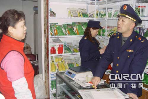 工商人員在一銷售點(diǎn)對(duì)種子進(jìn)行檢查