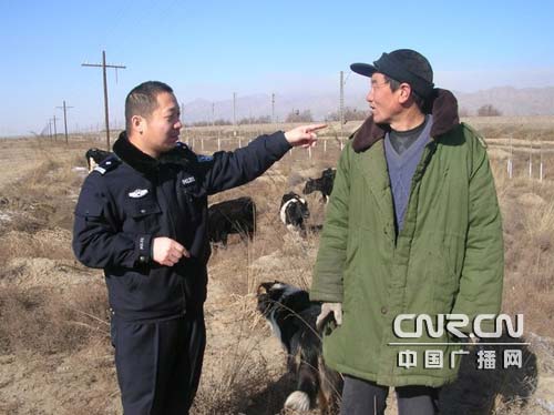 民警正在向養(yǎng)牛戶宣傳鐵路安全知識