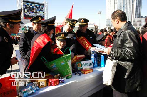 今年消費(fèi)者權(quán)益保護(hù)日的主題為“消費(fèi)與責(zé)任”,來自工商行政管理、食品藥品監(jiān)督管理、質(zhì)量技術(shù)監(jiān)督、價(jià)格監(jiān)督檢驗(yàn)、衛(wèi)生監(jiān)督、司法等部門,以及電信、供電等企業(yè)的工作人員不斷向群眾發(fā)放宣傳材料,耐心解答疑問和受理投訴。