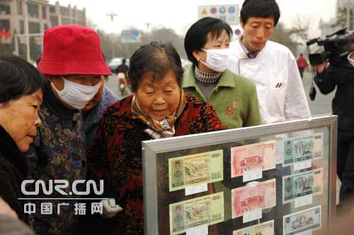 市民在人民銀行宣傳點(diǎn)辨別真?zhèn)稳嗣駧牛〝z影/彭川)