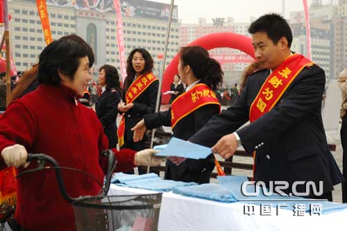 中廣網(wǎng)呼和浩特3月21日消息(記者鄭穎 實(shí)習(xí)記者彭川)3月21日,內(nèi)蒙古呼和浩特市舉行了“2008年全市社會(huì)治安綜合治理宣傳月集中宣傳活動(dòng)”。雖然天空飄著零星小雨,仍有不少市民前來(lái)參與活動(dòng)。