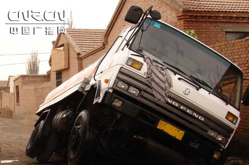 撞翻的油罐車