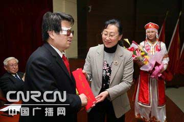 內(nèi)蒙古大學(xué)校黨委書記劉麗華教授向金海同志頒發(fā)優(yōu)秀共產(chǎn)黨員證書