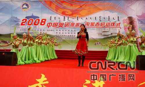 啟動儀式上還進(jìn)行了文藝表演,呼和浩特民族歌舞團(tuán)表演的《超越夢想》、《相約北京 奧運(yùn)歌曲》等歌舞為奧運(yùn)年活動增添了動感,草原歌手龍梅傾情演繹的一曲《陪你一起看草原》把觀眾帶入遼闊的大草原。