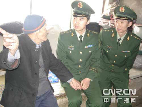 邊防官兵正和孫文才大爺交談