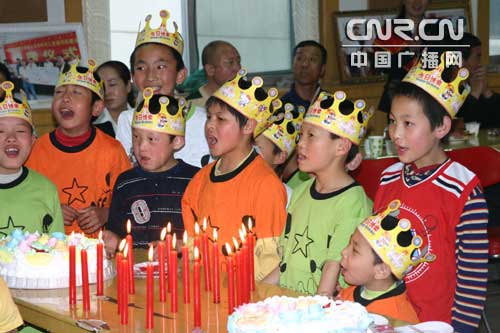 呼和浩特兒童福利院坐落在呼和浩特市回民區(qū)縣府街,現(xiàn)有290多名被收養(yǎng)的孩子。在得知汶川地震后,福利院的老師和孩子們都深感痛心。昨日,是福利院孩子們的生日,福利院的老師告訴記者,到這來的孩子都不知道自己的生日,所以每過一段時(shí)間,我們就會集體為一批孩子們過一次生日。因?yàn)楦@阂彩且粋(gè)受捐助的機(jī)構(gòu),所以,我們將用今天給孩子們過生日的時(shí)間,以孩子們自己的方式,為災(zāi)區(qū)人民祈福。也讓孩子們在每一個(gè)生日的時(shí)候都能想起這件事。在災(zāi)難面前我們都是中國人。