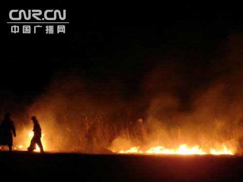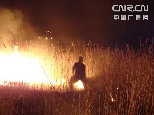火情就是命令,接到報警后,中隊迅速組織出動2輛消防車,18名指戰(zhàn)員火速趕赴現(xiàn)場。當消防官兵接近收費站時就能看到飛舞的火焰.到達現(xiàn)場后,發(fā)現(xiàn)著火的蘆葦靠近保護區(qū)內(nèi),是三處比較分散部分燃燒起的火勢,現(xiàn)火勢正在向四周蔓延開來,里側的部分蘆葦已被燒毀。所幸沒有起風,否則后果不堪設想,當務之急是馬上對著火的蘆葦進行撲救,但是由于著火部位距離消防車?康奈恢锰h,并且著火點比較分散。鑒于此,現(xiàn)場指揮員決定,放棄利用水槍撲救。把人員分為三組,分別對三處著火點,用樹枝、爛抹布等撲火工具對火勢進行撲救。經(jīng)過消防官兵的不懈努力,23時36分,幾處蘆葦叢的火勢終于被撲滅。由于消防官兵的及時撲救,避免了蘆葦大面積燃燒,有效保證了自然保護區(qū)內(nèi)的良好環(huán)境。