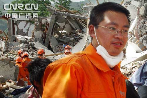 黃啟龍:自古忠孝難兩全 我的家就在離南壩鎮(zhèn)30公里的廣元市青川縣,父母在家種地,弟弟在外打工。地震發(fā)生后,我就一刻不停地?fù)艽蚣胰穗娫,可那邊始終是盲音,直到現(xiàn)在還沒有家人的任何消息。聽說這次抗震救援支隊(duì)要帶一名隨行照相人員,我就主動(dòng)請纓參加,當(dāng)看到過去山青水秀的家鄉(xiāng)變成一片廢墟,我心里非常難過,于是我又主動(dòng)要求加入“尖刀班”,到最苦、最累、最危險(xiǎn)的地方搶救我的父老鄉(xiāng)親,懷著對家人無限的思念和憂慮,我奮勇戰(zhàn)斗在救災(zāi)一線。15日下午4點(diǎn)22分,在南壩鎮(zhèn)小學(xué),我們小心地把一具孩子的遺體抬出,孩子的父母撕心裂肺的哭聲,我感到很揪心。更讓我傷心的是,有一次,我挖出一具40多歲的民工遺體,家在遠(yuǎn)方,無人認(rèn)領(lǐng)。看著看著,我就想到了和他年齡仿佛的父親。家在咫尺,牽掛在天涯,我很愧疚,我不是一個(gè)好兒子,但是自古忠孝難兩全,我是一名軍人,就應(yīng)該以服從命令為天職,搶救救這里群眾同救我的家人一樣。
