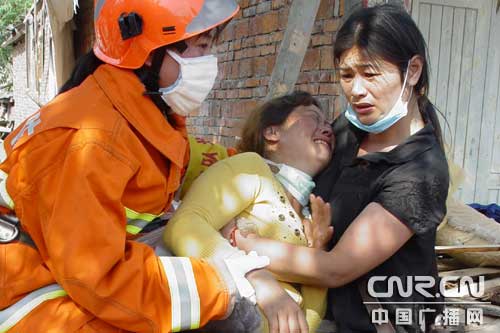 王悅:一聲媽媽喚醒休克家屬 我是全國首支現(xiàn)役制女子消防中隊(duì)的首任隊(duì)長,光環(huán)在我頭上籠罩,責(zé)任也在我肩上承擔(dān)。汶川地震,牽掛著我們女子消防中隊(duì)每個(gè)隊(duì)員的心,赴川參加抗震救災(zāi)也是我們義不容辭的責(zé)任。地震發(fā)生后,我們?nèi)w女兵簽名向支隊(duì)遞交了請戰(zhàn)書。17日晚上22:00,支隊(duì)黨委向中隊(duì)發(fā)出了參與救災(zāi)行動(dòng)的通知。凌晨1:00,我?guī)ьI(lǐng)選拔出的10名女戰(zhàn)士出發(fā),立即趕往南壩鎮(zhèn)與先期到達(dá)的總隊(duì)救援隊(duì)匯合。在救援一線我們發(fā)揚(yáng)巾幗不讓須眉的作風(fēng),同男隊(duì)員們一起搬磚塊、抬樓板,用手一點(diǎn)點(diǎn)地打通廢墟。同時(shí),給隊(duì)友們做好伙食補(bǔ)給、后勤保障,對被困家屬做心理疏導(dǎo)和安慰。在每一個(gè)救援現(xiàn)場,周圍都會(huì)聚集很多遇難者家屬,他們焦慮的目光、悲痛的哭聲緊緊揪著隊(duì)員們的心。在一棟完全坍塌的居民樓旁,一位婦女帶著兩個(gè)男孩子在廢墟前焦急地期待自己的丈夫能有生還的希望,可在這片已經(jīng)化為烏有的廢墟中幾乎沒有了生命的跡象,絕望中婦女多次發(fā)生昏迷。當(dāng)時(shí),我們正在附近救援,戰(zhàn)友們看到了這一幕,急忙上前施救:為她撐起遮陽傘,給她喂水喝……。兩個(gè)孩子抱著昏倒在地的母親害怕地喊著:“媽媽”可昏迷的母親依然沒有醒過來,看著昏迷的母親和兩個(gè)傷心欲絕的孩子,我們不由自主一起大聲跟著喊“媽媽,媽媽……”。幾分鐘后,昏迷的母親在十幾個(gè)“孩子”的呼喚聲中終于蘇醒過來。通過我們耐心安慰,這位母親終于將情緒穩(wěn)定下來,含著淚水發(fā)出微弱地說了聲,孩子,謝謝你們。