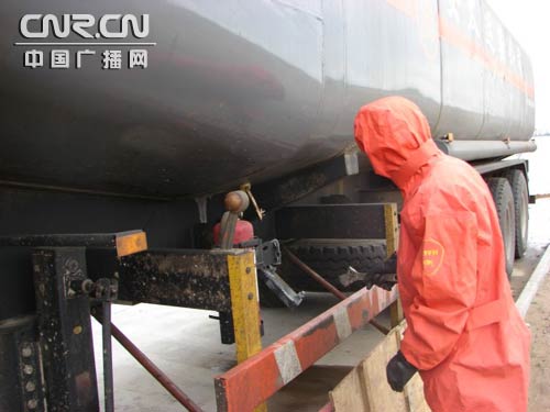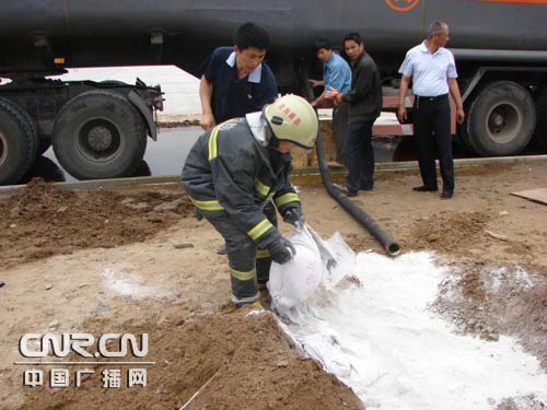 考慮到鹽酸揮發(fā)性大,事故現場刺鼻的氣味讓人淚流滿面,中隊指揮員及時根據現場情況與環(huán)保、安監(jiān)及相關的工作人員研究處置方案,立即作出部署:一是盡快調運石灰粉覆蓋在泄漏區(qū)域表面,防止揮發(fā)性氣體蔓延;二是及時協(xié)調調派一輛大噸位鹽酸罐車進行對泄漏罐進行倒罐;三是加強參戰(zhàn)官兵個人防護,確保官兵安全。同時,由環(huán)保、安監(jiān)部門對泄漏區(qū)附近大氣進行實時監(jiān)測,由公安部門疏散現場圍觀群眾。