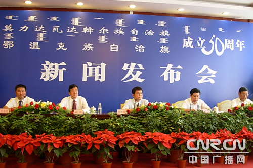 | 中廣網(wǎng)呼和浩特7月3日消息(記者文偉)今天上午,內(nèi)蒙古自治區(qū)莫力達瓦達斡爾自治旗和鄂溫克族自治旗聯(lián)合在呼和浩特市召開建旗50周年新聞發(fā)布會,向社會各界及新聞媒體通報了兩個旗建旗50周年所取得的成績及本次慶;顒拥幕I備情況。