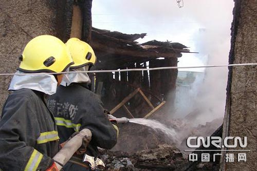 消防官兵4時(shí)23分接到海滿村村民報(bào)警,立即出動(dòng)3輛消防車,15名官兵趕到現(xiàn)場。到場發(fā)現(xiàn)兩間土坯房起火,燃燒面積100余平方米,房屋四周圍繞著塑料布遮蓋的蔬菜大棚,一名婦女癱坐在地,茫然無助的望著消防官兵說,她家僅有的5000多元血汗錢還沒搶救出來。