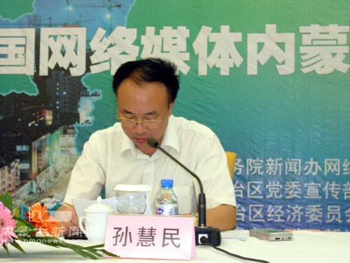 內蒙古自治區(qū)政府副秘書長、內蒙古自治區(qū)政府新聞發(fā)言人孫慧民代表中共內蒙古自治區(qū)黨委、內蒙古自治區(qū)人民政府,向出席今天活動的中央外宣辦、中央重點新聞網站、兄弟省市重點新聞網站、知名商業(yè)網站的各位朋友們表示熱烈的歡迎和誠摯的問候!他指出:近年來,內蒙古自治區(qū)全面貫徹落實科學發(fā)展觀,抓住國家實施西部大開發(fā)和振興東北地區(qū)等老工業(yè)基地戰(zhàn)略機遇,加快改革開放和現代化建設步伐,經濟社會發(fā)展實現了重大跨越。自治區(qū)成立60年以來,特別是改革開放30年來,隨著國民經濟的快速發(fā)展和綜合經濟實力的逐步增強,人民生活總體上實現了由溫飽向小康的歷史性跨越,并向著建設全面小康社會的宏偉目標邁進。內蒙古已經具備了許多構建和諧社會的有利條件。