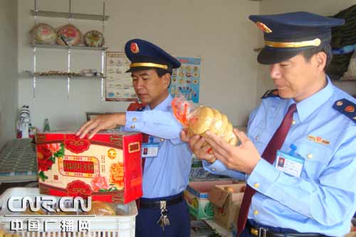 中廣網(wǎng)呼和浩特9月12日消息(記者那森寶音 通訊員劉國發(fā) 馬中華) 為確保廣大消費者渡過一個安全、祥和的節(jié)日,從9月4日起,內(nèi)蒙古鄂爾多斯市工商局組織12支執(zhí)法檢查組,開展了為期一個月的國慶、中秋兩節(jié)食品市場專項整治活動。采取轄區(qū)分重點巡查、專項檢查組隨機抽查、消保人員根據(jù)消費者投訴舉報主動出擊檢查等多種方式,進一步加大市場監(jiān)管巡查工作力度,對全市的食品市場展開了拉網(wǎng)式的聯(lián)合檢查。僅9月4日一天,全市工商系統(tǒng)就退市過度包裝和不合格月餅298公斤,依法查處21起月餅質(zhì)量問題和強制搭售等侵害消費者合法權(quán)益的違法行為; 查扣28公斤涉嫌假冒偽劣食用油;取締19戶小食品店、小商販、小攤點、小作坊、小集市。