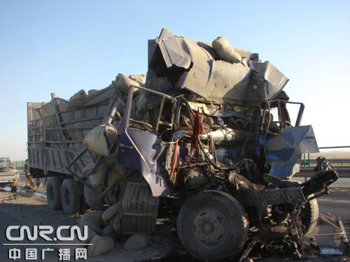 | 中廣網(wǎng)呼和浩特11月5日消息(記者鄭穎 通訊員張偉)今天早上7:20左右在包東高速公路22公里—23公里處發(fā)生貨車追尾事故,追尾車輛中的5人當場死亡。