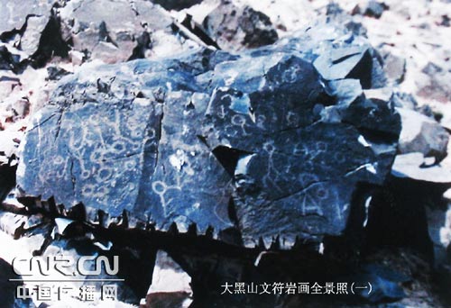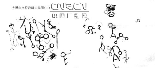 最具代表性的一幅是大黑山頂面朝南的一塊獨(dú)立巖石,在兩平方米的巖石上刻畫出形態(tài)各異的文符個(gè)體30多個(gè)。比龍山文化陶文符多19個(gè)字,是國(guó)內(nèi)迄今為止史前陶(石)遺存文符字?jǐn)?shù)最多的一塊。它向后人展示了文字由初始的象形圖畫,轉(zhuǎn)變?yōu)橛卸喾N符號(hào)組織的抽象化圖文,用來(lái)表達(dá)較為復(fù)雜的抽象概念。經(jīng)判定,此文符既不是新時(shí)期早期寫實(shí)圖畫,又不是西方遍體音符號(hào),也不是中國(guó)方塊漢字符號(hào),初步推測(cè)可能是甲骨文應(yīng)用之前的過(guò)度符號(hào)。