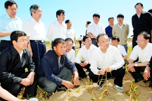 8月28日至29日,中共中央政治局常委、國務(wù)院總理溫家寶在國家有關(guān)部委負責人和自治區(qū)領(lǐng)導(dǎo)的陪同下,專程趕往受災(zāi)較嚴重的赤峰市敖漢旗、通遼市奈曼旗檢查指導(dǎo)抗旱減災(zāi)工作。
