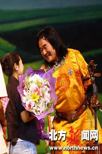 中廣網(wǎng)呼和浩特8月17日消息 8月15日晚,伴隨著悠揚(yáng)的馬頭琴聲,《草原·天駒》齊·寶力高馬頭琴交響音樂(lè)會(huì)在內(nèi)蒙古烏蘭恰特奏響。這臺(tái)音樂(lè)會(huì)是慶祝自治區(qū)成立60周年的一項(xiàng)文藝活動(dòng),采用了馬頭琴獨(dú)奏、交響樂(lè)協(xié)奏等多種演奏形式,把傳統(tǒng)民族藝術(shù)與現(xiàn)代藝術(shù)表現(xiàn)形式完美結(jié)合在一起。