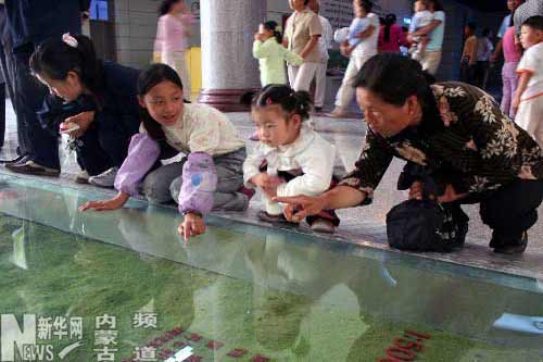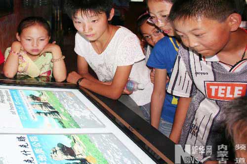 8月31日,克什克騰世界地質(zhì)公園博物館的多媒體展示臺吸引了一些小朋友的目光。