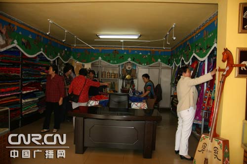 當(dāng)記者來到娜仁圖雅民族服飾手工藝品制作中心的時(shí)候,娜仁圖雅正在和一對(duì)定做結(jié)婚禮服的新人商議著什么。