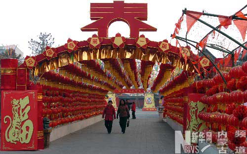 2月19日,游園的市民從呼和浩特市五塔寺元宵燈會入口走過。 元宵節(jié)臨近,呼和浩特各社區(qū)、街道辦事處組織了元宵節(jié)燈會等各種形式的游園活動。(張領)