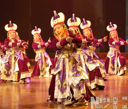 3月6日下午,由內(nèi)蒙古自治區(qū)婦聯(lián)主辦的紀(jì)念“三八”國際勞動婦女節(jié)表彰暨文藝演出在內(nèi)蒙古人民會堂舉行。這是演員們在表演舞蹈《蒙古盛裝》。