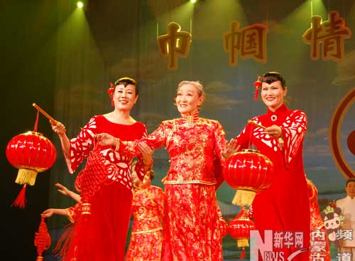 3月6日下午,由內(nèi)蒙古自治區(qū)婦聯(lián)主辦的紀(jì)念“三八”國際勞動婦女節(jié)表彰暨文藝演出在內(nèi)蒙古人民會堂舉行。這是阿拉騰服飾表演隊表演《喜迎奧運》。
