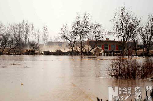 3月20日,獨(dú)貴塔拉鎮(zhèn)解放一社的村舍已經(jīng)被河水淹沒(méi)。 當(dāng)日1時(shí)50分左右,黃河內(nèi)蒙古杭錦旗獨(dú)貴塔拉鎮(zhèn)奎素段大堤發(fā)生潰堤險(xiǎn)情,當(dāng)?shù)剀娒裾趭^力搶險(xiǎn)。截至20日8時(shí),發(fā)生潰堤險(xiǎn)情的杭錦旗獨(dú)貴塔拉鎮(zhèn)和鄰近的杭錦淖爾鄉(xiāng)已有近萬(wàn)名群眾撤離到安全地帶,大約還有3000人正在緊急撤離中。 新華社記者 任軍川 攝