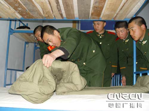 老兵幫助新戰(zhàn)友整理內(nèi)務(wù)