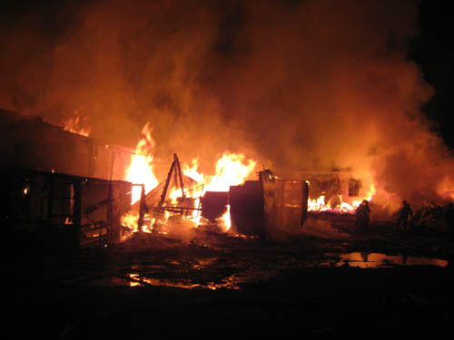 6日晚上21時(shí)56分,滿洲里市消防特勤大隊(duì)接到報(bào)警,并迅速出動(dòng)3輛消防車、23名官兵趕赴現(xiàn)場。當(dāng)官兵距離火場1公里時(shí),就能看到火光在黑夜中染紅了半邊天。指揮員意識到火場形勢比較嚴(yán)峻,隨即調(diào)集一中隊(duì)2輛、二中隊(duì)1輛消防車增援。