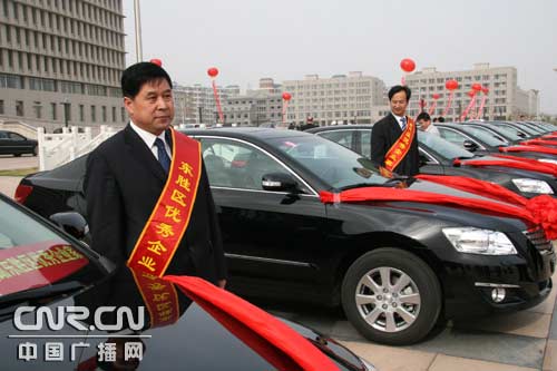 中廣網(wǎng)呼和浩特4月21日消息(記者鄭穎)4月20日下午,在東勝區(qū)政府大會堂中,東勝區(qū)區(qū)委政府將20個(gè)由瑞典皇家設(shè)計(jì)大師設(shè)計(jì)的純金鑲鉆獎(jiǎng)杯和10輛豐田轎車發(fā)給為社會作出突出貢獻(xiàn)的企業(yè)家。
