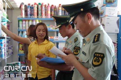 邊防官兵在商業(yè)網(wǎng)點(diǎn)宣傳《禁毒法》