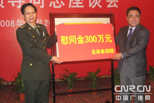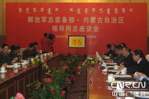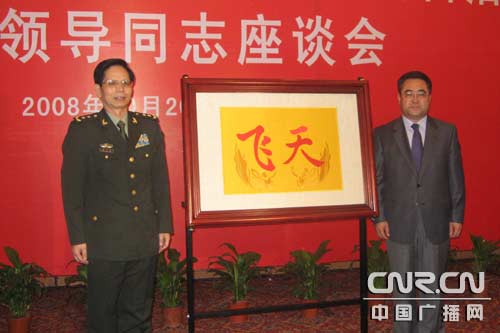 中廣網(wǎng)呼和浩特10月20日消息(記者鄭穎、劉俊霞)今天上午,解放軍總裝備部代表與內(nèi)蒙古政府領(lǐng)導(dǎo)、“神舟七號”發(fā)射、回收環(huán)節(jié)相關(guān)的內(nèi)蒙古各部門領(lǐng)導(dǎo)舉行座談會,解放軍總裝備部向內(nèi)蒙古自治區(qū)贈送了由江澤民題寫的“飛天”字樣的蘇繡紀(jì)念品以及300萬元慰問金。