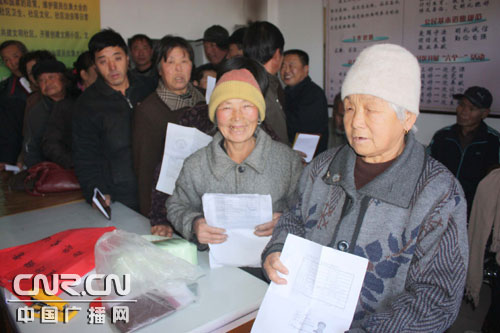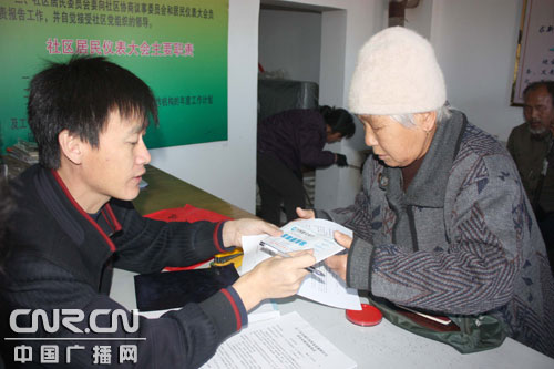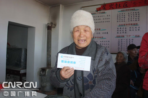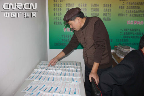 向陽街道辦事處工作人員正在核實發(fā)放建設(shè)銀行的現(xiàn)金卡(補(bǔ)貼金)