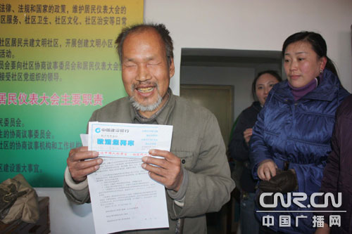 吳新江高興地領(lǐng)到了租賃住房補(bǔ)貼金(建設(shè)銀行的現(xiàn)金卡)