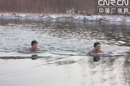 這些“勇敢人”來自扎蘭屯市的四面八方,他們從事著不同的行業(yè):黨、政、工、學(xué)、商,最大的年齡80多歲。他們相聚在雅魯河畔,笑傲嚴(yán)寒,在水中揮臂奮游。如果說冷水浴足以訓(xùn)練大膽與無畏,冬泳則更顯現(xiàn)出堅韌和陽剛。