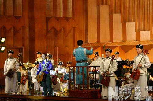 是蒙古國演員在演奏馬頭琴名曲《約會》。 新華社記者李澤兵攝