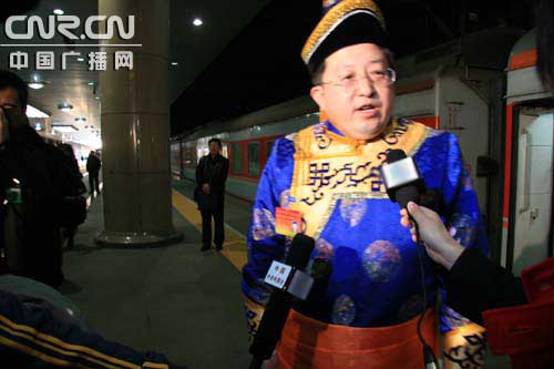 內(nèi)蒙古團代表剛下火車,一位代表接受采訪
