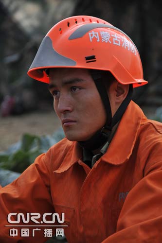 包頭市消防四中隊(duì)二期士官劉杰,來(lái)自四川省廣元市青川縣,他的戰(zhàn)士劉杰家距離目前執(zhí)行抗震救災(zāi)任務(wù)的平武縣南壩鎮(zhèn)只有三十公里,就在隨總隊(duì)抗震增援應(yīng)急隊(duì)登上飛機(jī)之前,他突然接到爺爺在這次大地震中遇難的消息。劉杰在得知噩耗后,盡管非常悲痛,盡管十分憂慮家鄉(xiāng)其他親友,但他強(qiáng)忍著淚水登上了飛機(jī)。離家鄉(xiāng)越近,擔(dān)心親人的情感越急切,當(dāng)劉杰得知部隊(duì)趕赴的地區(qū)是平武而不是老家青川時(shí),當(dāng)部隊(duì)馬不停蹄、晝夜行軍時(shí)他始終沒有流露出什么。趕到救援地點(diǎn)二話不說(shuō)、顧不上休息便和戰(zhàn)友們投入了戰(zhàn)斗。劉杰他們接到的任務(wù)是到南壩鎮(zhèn)一所學(xué)校救援,當(dāng)救援隊(duì)從斷壁殘?jiān)型诔龅谝痪呤w時(shí),這位身材瘦弱、性格內(nèi)向但十分堅(jiān)韌的四川漢子卻流出了熱淚,戰(zhàn)友們經(jīng)過(guò)再三詢問(wèn)后才知道了事情的原委。劉杰是爺爺從小帶大的,爺孫倆感情非常深。包頭市消防四中隊(duì)二期士官劉杰: