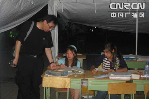 記得我們在昭化間休時去了一所學(xué)校(寶輪中學(xué)),只有高三的學(xué)生在帳篷里面?zhèn)鋺?zhàn)高考,我們此時唯一能做的就是安慰他們,一個勁的和學(xué)生們說:好好復(fù)習(xí),爭取考上理想的大學(xué),有我們在你們就安心學(xué)習(xí)吧!看到有的學(xué)生在泡方便面,我把自己身上僅有的三根香腸送給了他們,這也是此時我唯一能做的。作為常年生活在北方的人,我們在任務(wù)區(qū)見識了三四次比較強烈的余震、毒蛇橫行、泥石流和滑坡、地震造成的山體開裂和濕熱的氣候,但我們沒有一個人退縮,沒有一個人有怨言,都在盡心盡力的工作,盡管是每天只能休息幾個小時,盡管是席地而臥,盡管是被蚊蟲叮咬,而這些經(jīng)歷對我們每一名參加抗震救災(zāi)的隊員來說,能來四川參加抗震救災(zāi)工作是我們一生的榮耀和記憶!