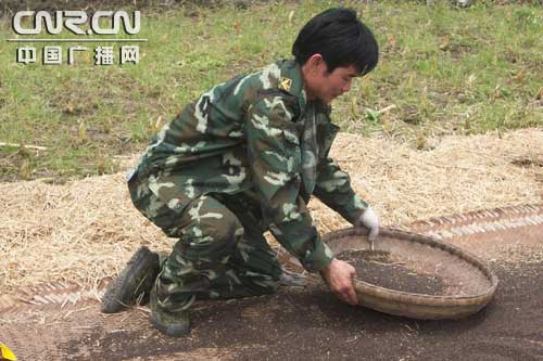 搶險期間幫助當(dāng)?shù)剞r(nóng)民搶收菜子