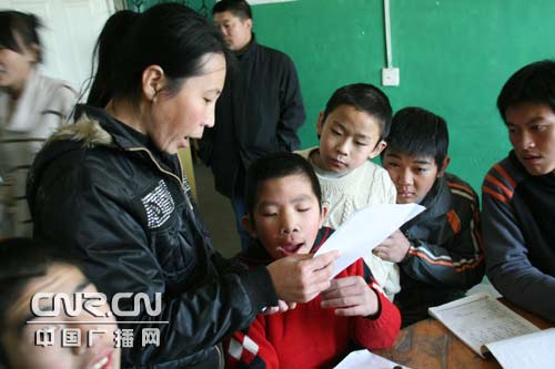 記者:要喊孫月光親媽媽的女孩叫邸春華,曾經(jīng)是個聾啞兒童,在孫月光的精心輔導(dǎo)下,邸春華現(xiàn)在不僅能開口說話,還能對其他的聾啞兒進(jìn)行康復(fù)訓(xùn)練,成了自食其力的勞動者。孫月光創(chuàng)辦了內(nèi)蒙古赤峰回音聾兒康復(fù)樂園,為了能隨時隨地的教孩子們發(fā)音,她把康復(fù)樂園辦到了自己家里。這個只有20平米的小屋,被孫月光隔成兩間,一間是只有七、八張小桌的教室,另一間是放著三張上下床和一張雙人床的臥室。孩子多,床位緊張時,孫月光就把兒子送給鄉(xiāng)下的婆婆照看,自己摟著聾兒睡覺。