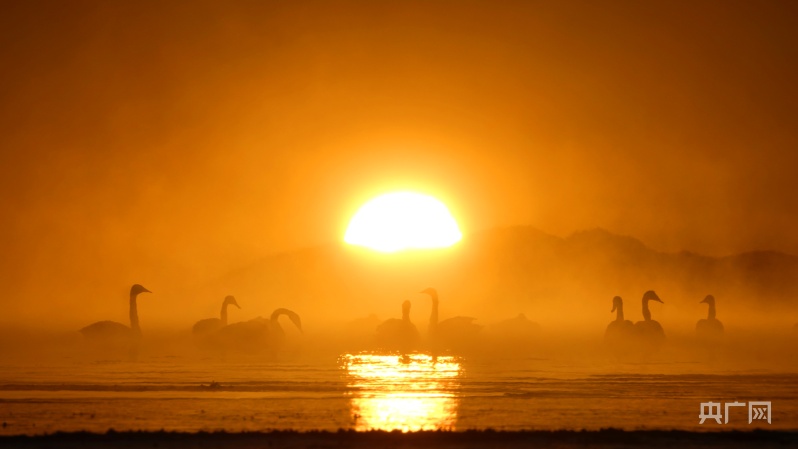 鏡頭里的青海|青海湖畔天鵝沐浴2024年第一縷陽(yáng)光