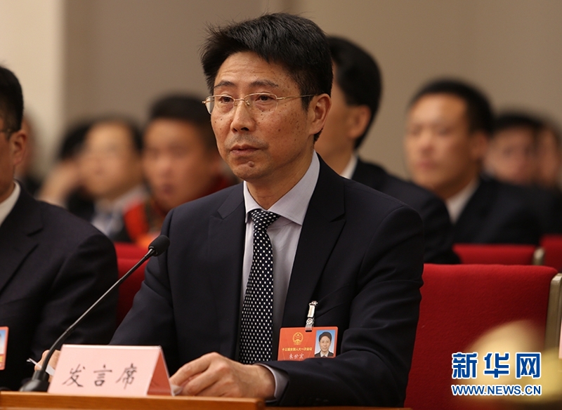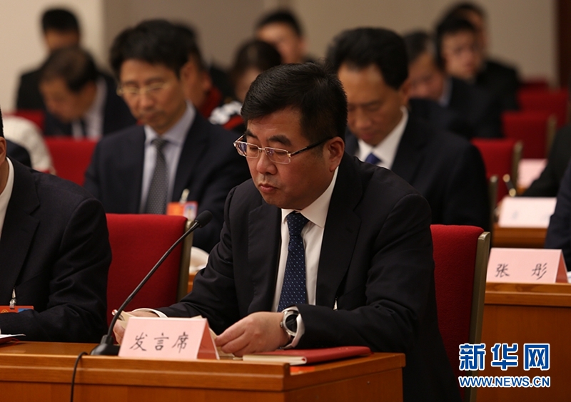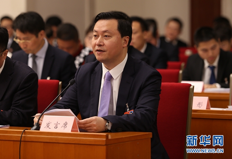 全國(guó)人大代表,四川省樂(lè)山市委副書(shū)記、市長(zhǎng)張彤在發(fā)言。新華網(wǎng)曹鵬攝